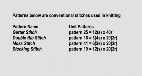 The notices above and the two below show the pattern index. Each unit was labelled so that the viewer could cross reference it with the index, and each index was cross referenced with the book the pattern had come from.